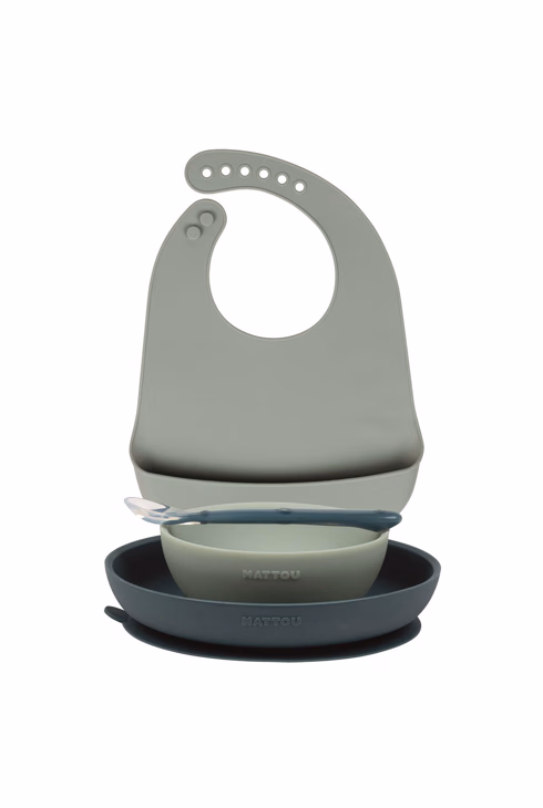 Coffret repas avec bavoir en silicone vert Nattou